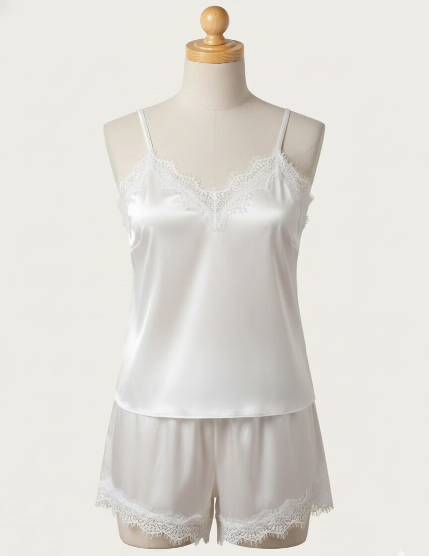 Este set con bata corta de encaje el cual puedes combinar con camison o pijama encaje esta confeccionado en satén de alto brillo color blanco puro, es la elección ideal para las novias que buscan elegancia y comodidad el día de su boda.Es perfecto para las sesiones de fotos de "preparación". puedes añadirle complementos como liga zapatillas cepillo o antifaz...