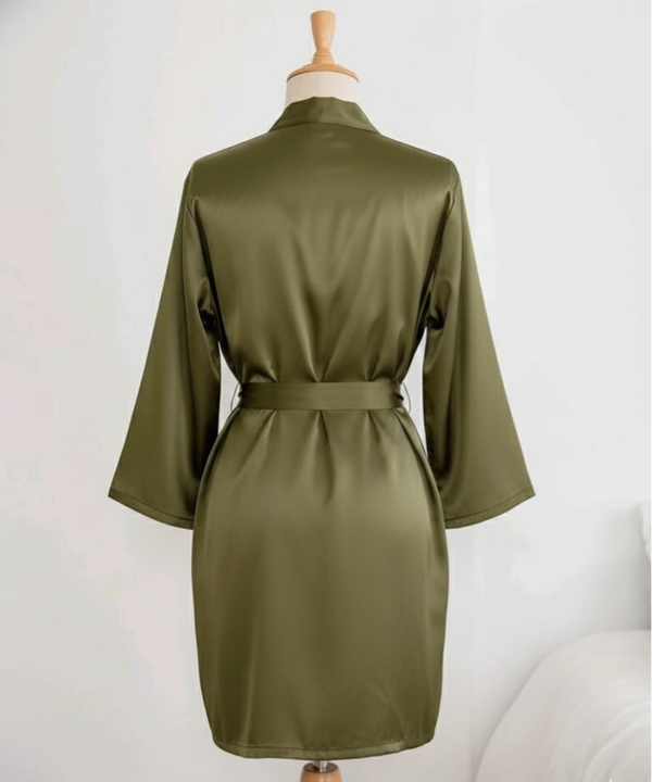 Esta bata corta, confeccionada en satén de alto brillo de color , es la elección ideal para las damas de honor o acompañantes que buscan elegancia y comodidad para acompañar a la novia en el día de su boda. Su diseño de corte kimono ofrece una silueta favorecedora y un tacto increíblemente suave, perfecta para las sesiones de fotos de "preparación".
